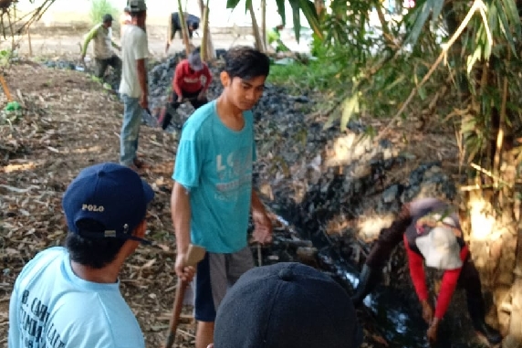 Kerja bakti pengurasan Saluran pembuangan Drainase RT 03 RW 04 Dusun Gondangan Desa Manggungsari Kecamatan Weleri agar saluran pembuangan menjadi lancar dan kesehatan lingkungan bisa terjamin dan terhindar dari penyakit